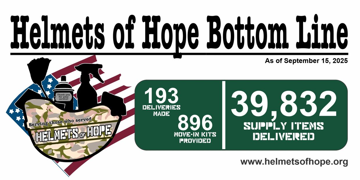 Helmets of Hope provides essential household supplies—cleaners, rags, brooms, mops, paper- and laundry products, et al—at no charge to veterans who have faced homelessness or other forms of housing crisis.